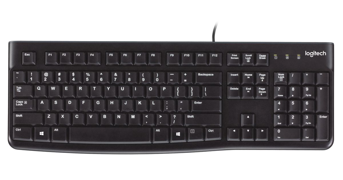 Logitech K120 Corded Keyboard, Täysikokoinen (100 %), Langallinen, USB, QWERTY, Musta