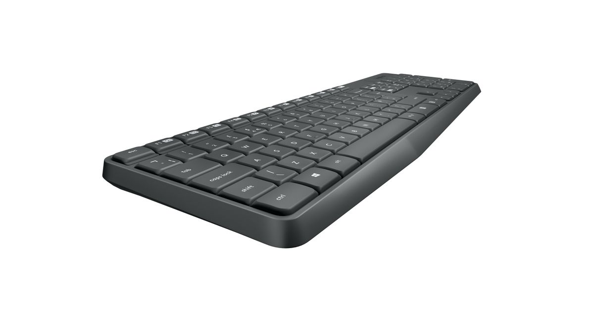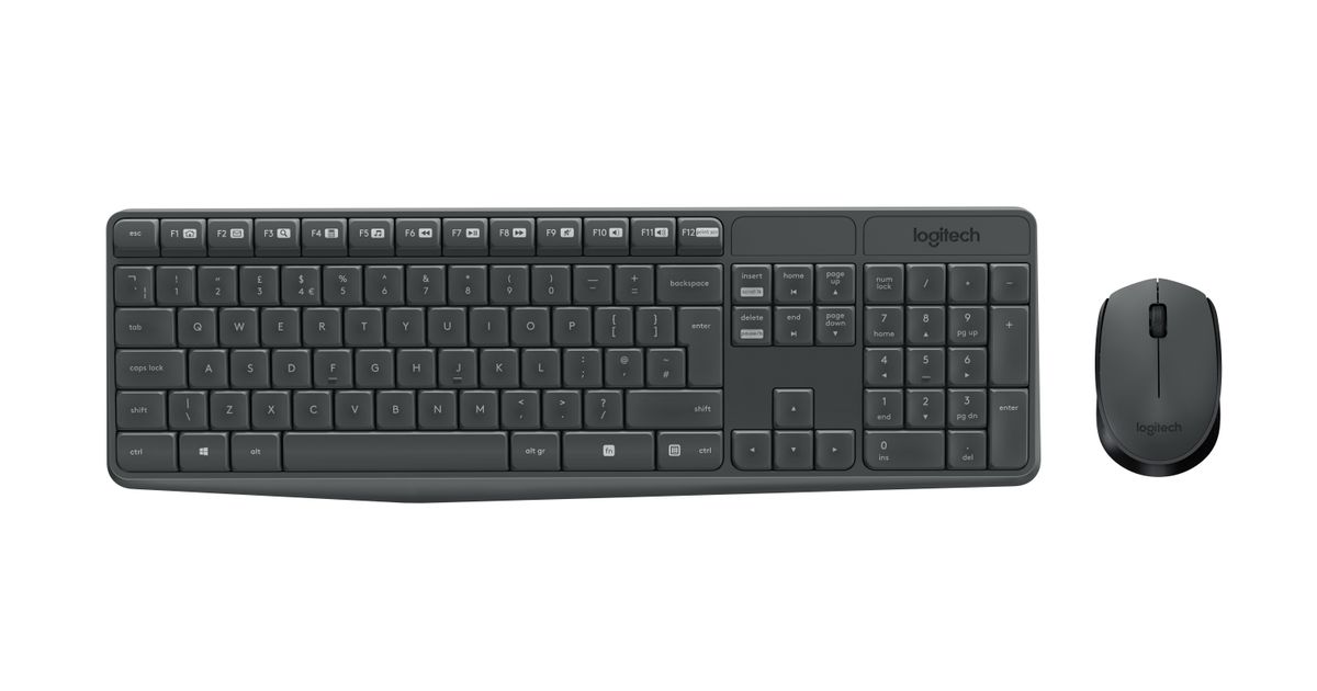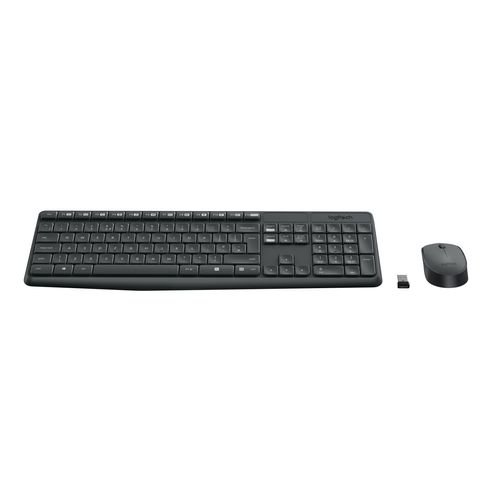 Logitech MK235, Täysikokoinen (100 %), Langaton, USB, QWERTZ, Harmaa, Sisältää hiiren