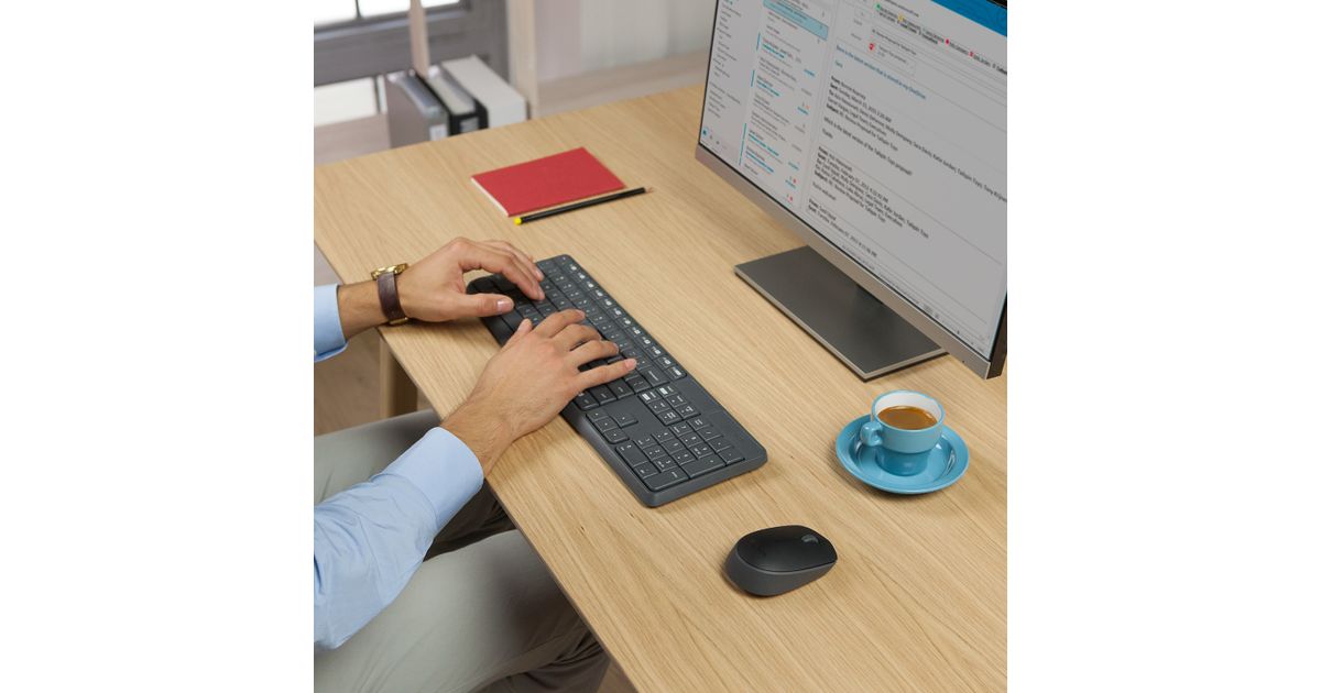 Logitech MK235, Täysikokoinen (100 %), Langaton, USB, AZERTY, Harmaa, Sisältää hiiren