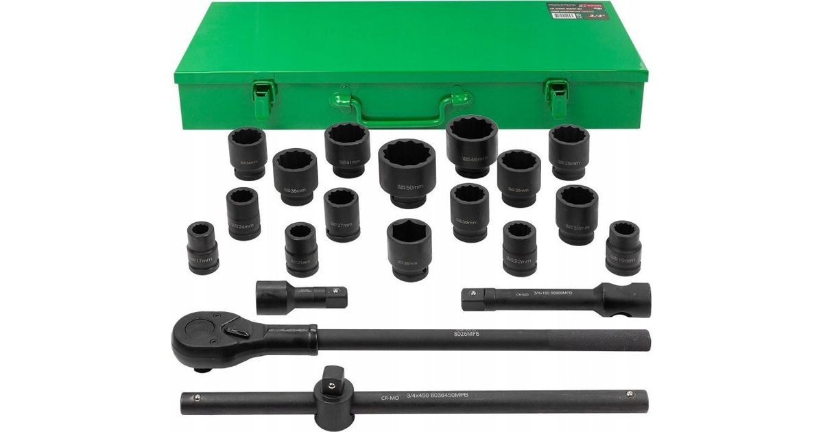 Löökmutrivõti ROCKFORCE / WMC ROCKFORCE löökmutrivõti KOMPLEKT 21 tk. 3/4" 12 NURK. 17-50 mm