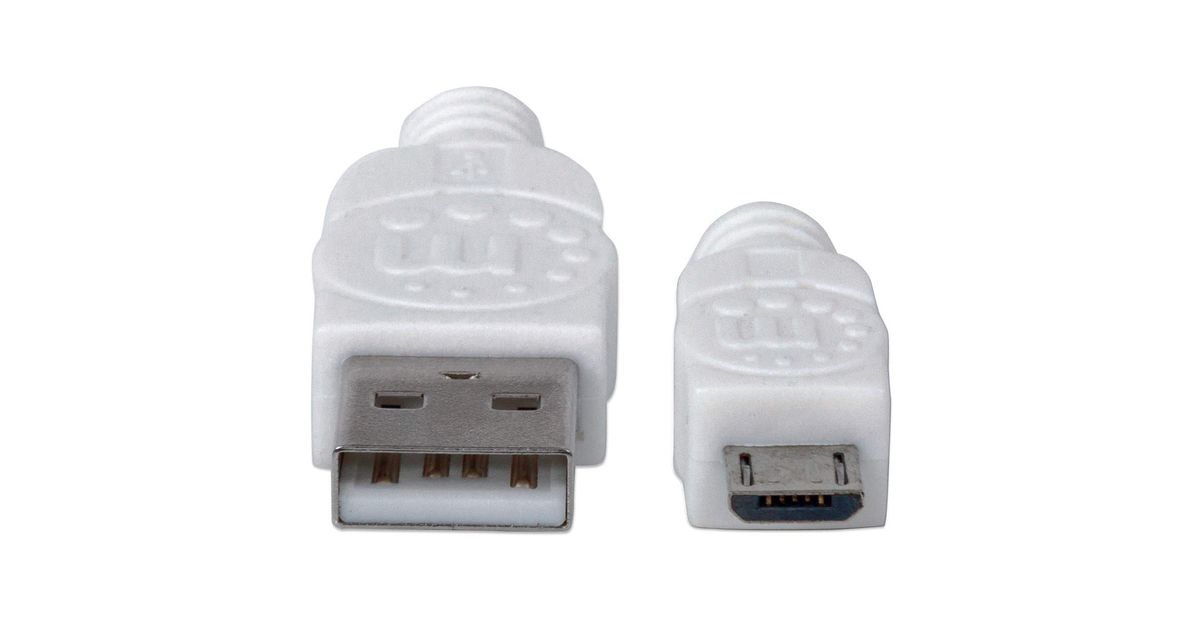 Manhattan 323987 USB-kaapeli 1 m USB 2.0 USB A Micro-USB B Valkoinen