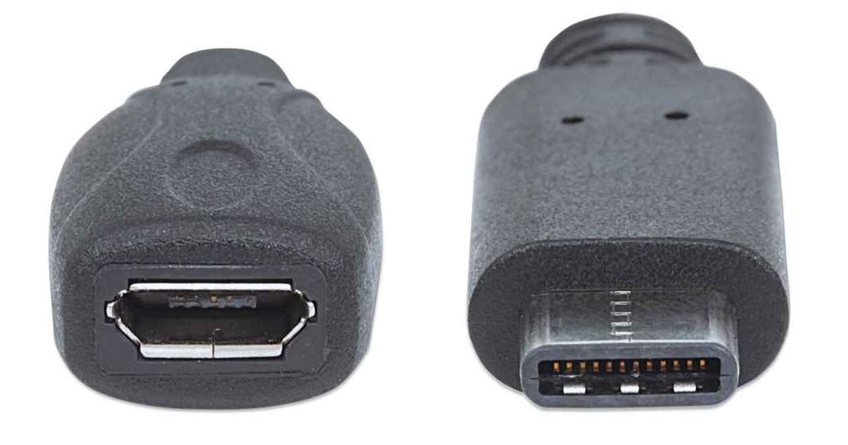 Manhattan 353335, 0,15 m, Micro-USB B, USB C, USB 2.0, Uros/naaras, Musta