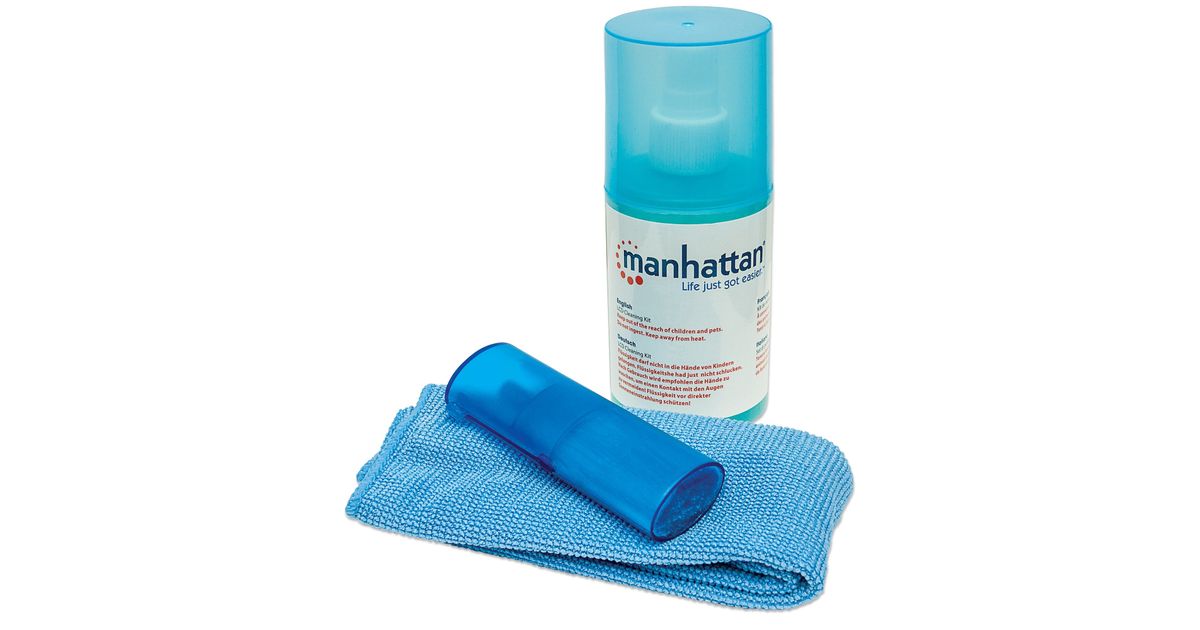 Manhattan 421027, Laitteiden puhdistusmärkä/-kuivaliinat & -neste, LCD/TFT/Plasma, 200 ml, Mikrokuitu, Sininen, -10 - 50 °C