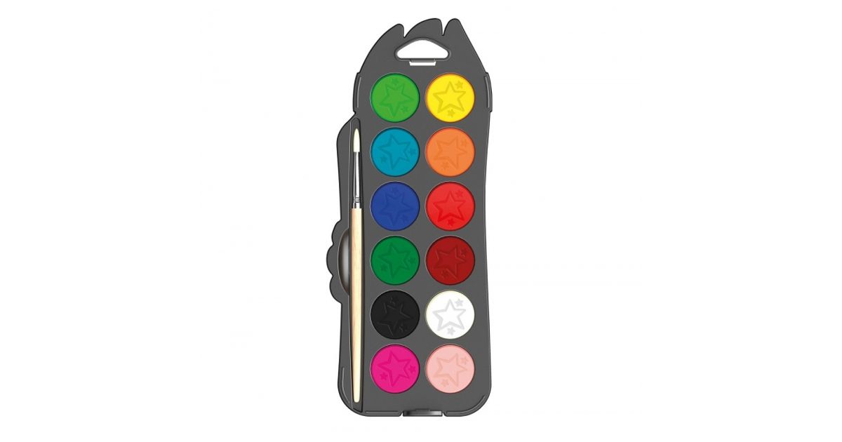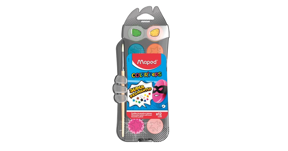 Maped 811520 vesiohenteinen maali Musta, Sininen, Syaani, Vihreä, Oranssi, Vaaleanpunainen, Punainen, Valkoinen, Keltainen Paletti 12 kpl