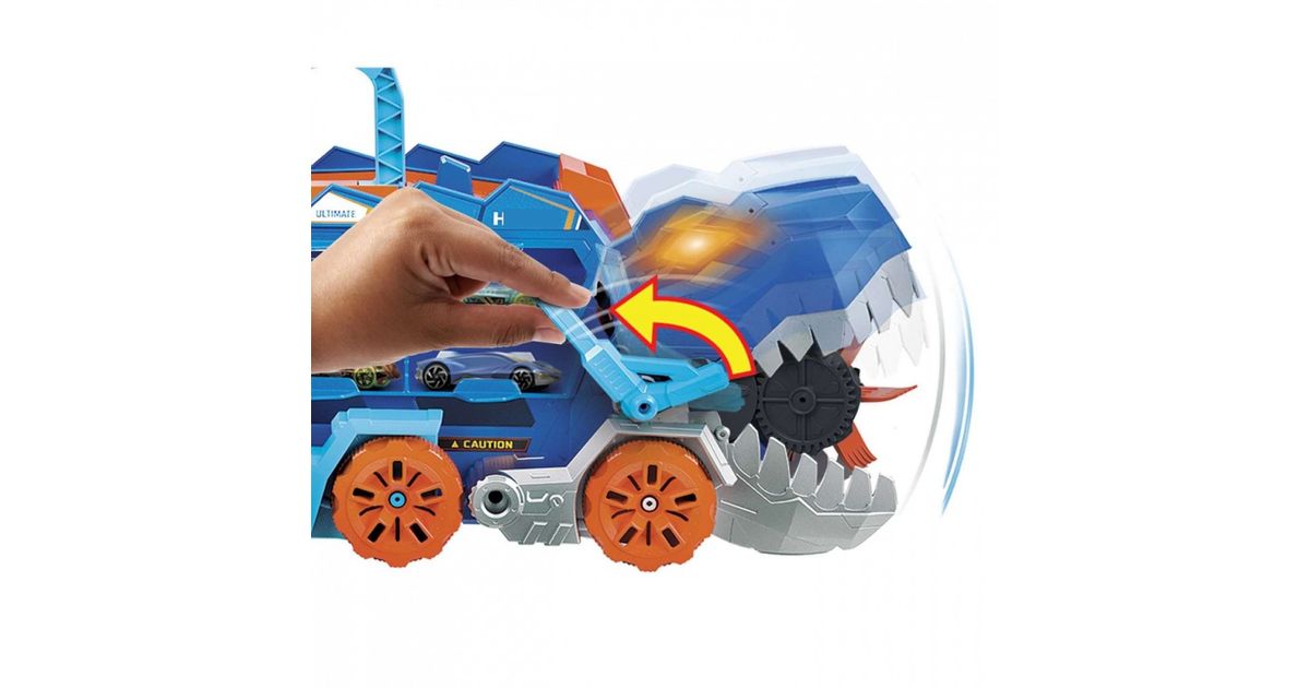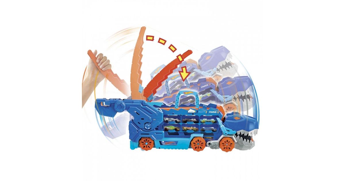 Mattel Hot Wheels T-Rex Mega Transporter komplekt koos transporteriga, mis muundub T-Rex HNG50-ks