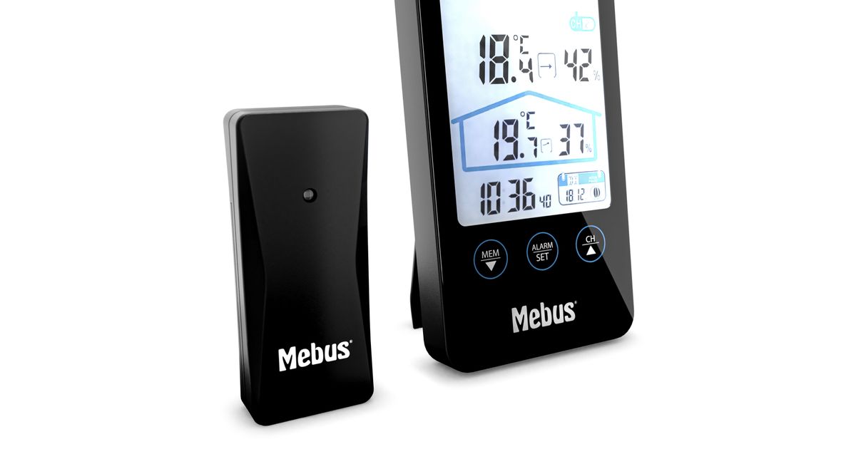 Mebus 11908, Musta, Kosteusmittari sisäkäyttöön, Lämpömittari sisäkäyttöön, Kosteusmittari ulkokäyttöön,..., Kosteusmittari, Lämpömittari, Kosteusmittari, Lämpömittari, Akku, AAA