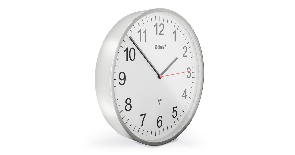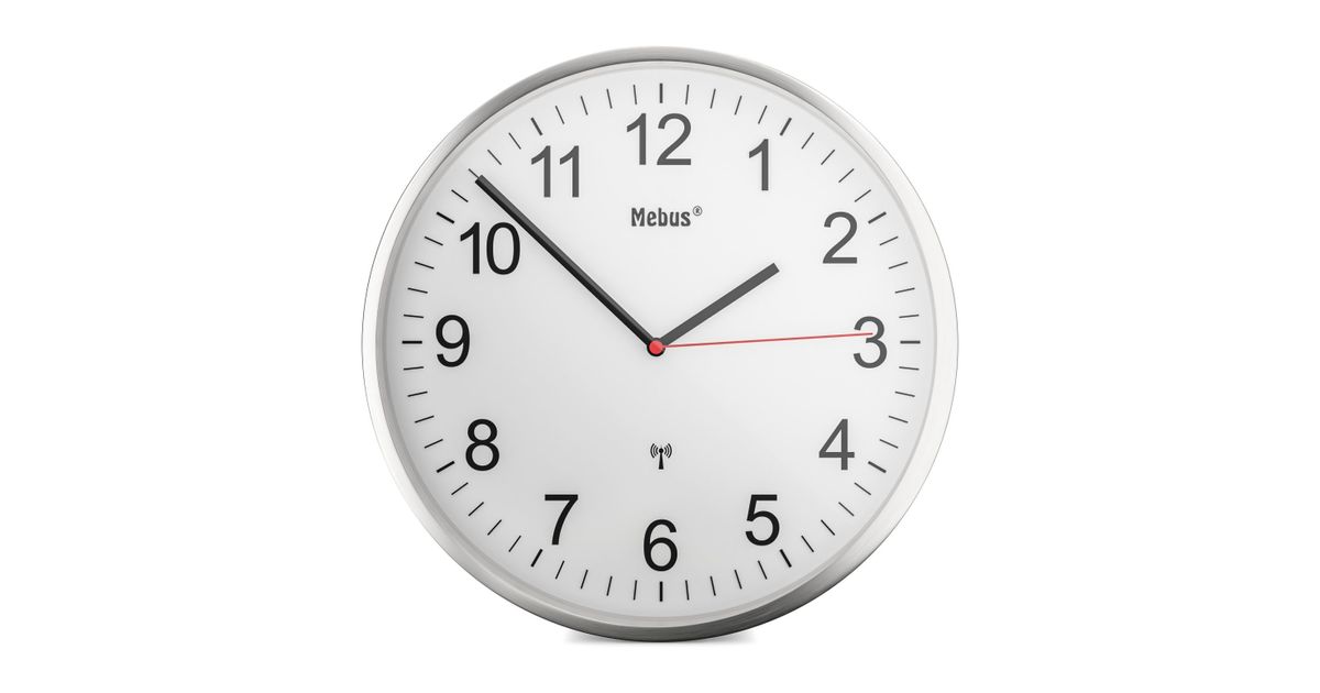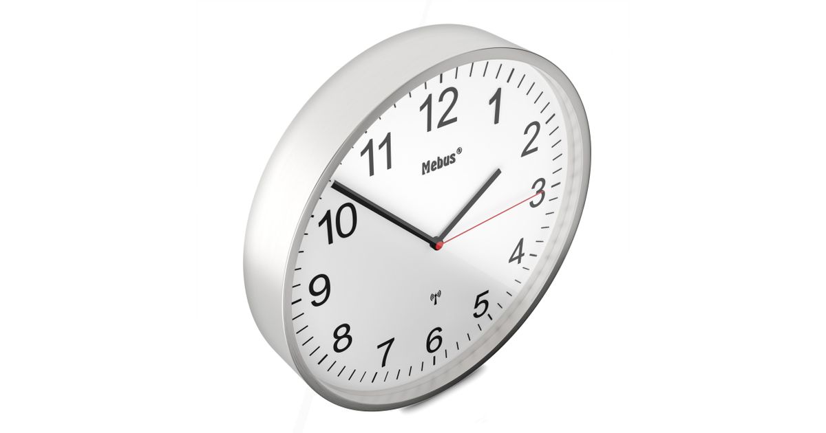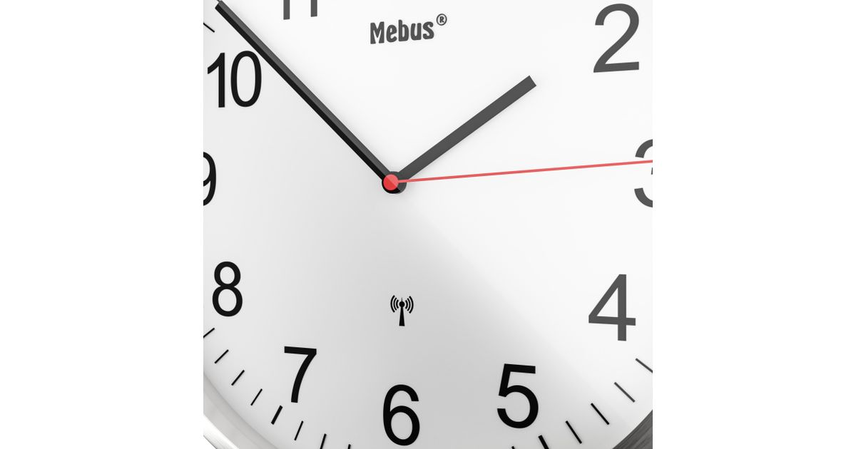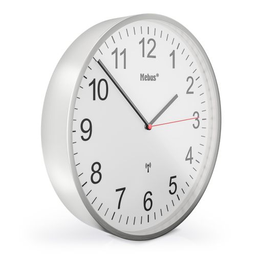Mebus 19411, Mekaaninen seinäkello, Pyöreä, Valkoinen, Metalli, Moderni, Akku