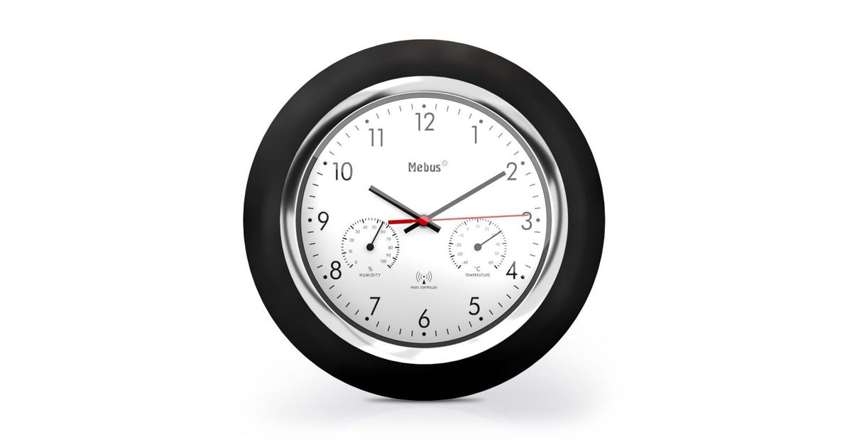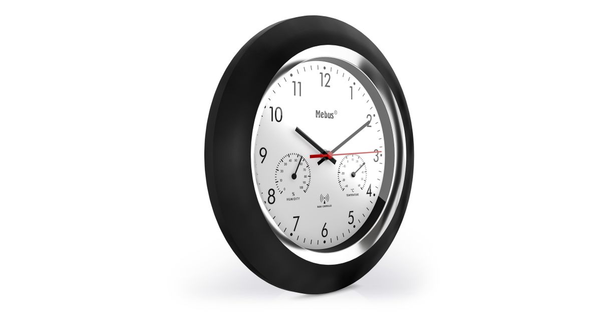 Mebus 19453 seinäkello Digitaalinen seinäkello Pyöreä Musta, Valkoinen