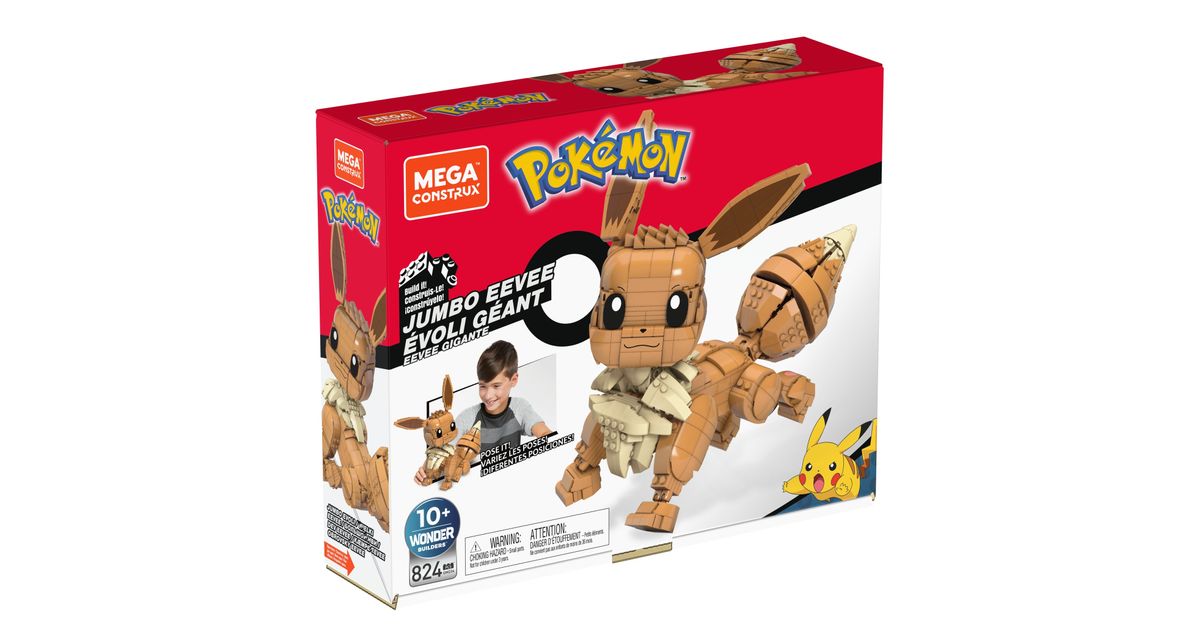 Valmistaudu suurimpaan taisteluusi noin 28 cm korkean rakennettavan Eevee-hahmon kanssa! 845-osainen rakennussarja sisältää rakastetun Pokémon-hahmon, jolla on tutut pitkät korvat, pörröinen häntä ja söpö hymy. Lähes todellisen kokoinen Eevee voidaan asetella eri asentoihin: se osaa istua, seistä ja ottaa taisteluasentoja. Sopii Wonder Builders -sarjaan. 6-vuotiaille ja sitä vanhemmille lapsille.
