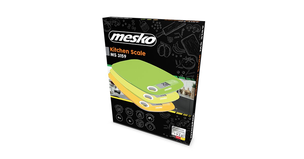 Mesko Home MS 3159y, Sähkökeittiövaaka, 5 kg, 1 g, Keltainen, Pöytämalli, Suorakulmio