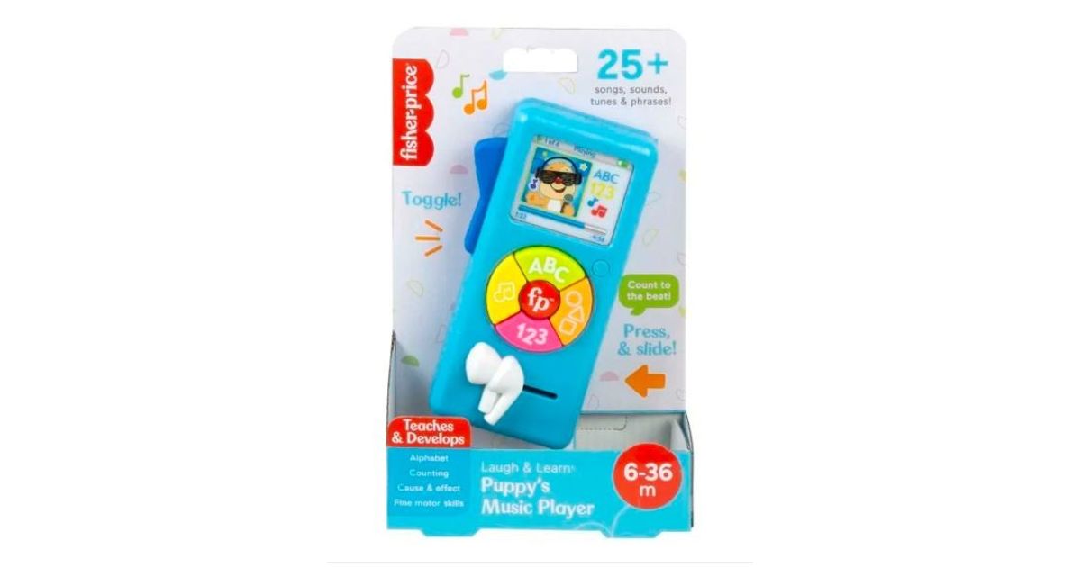 With Music Player 123 Learn and laugh! from Fisher-Price, your little one can take musical educational fun wherever they want. This portable toy looks like an MP3 player and has lots of great fun: a backlit screen with Puppy, educational songs to sing together in 5 styles, and activating elements to help develop dexterity. Your child will love imitating you with this interactive music player toy. Press the globe button to select the language: Polish, Hungarian, Czech, Slovak or English.