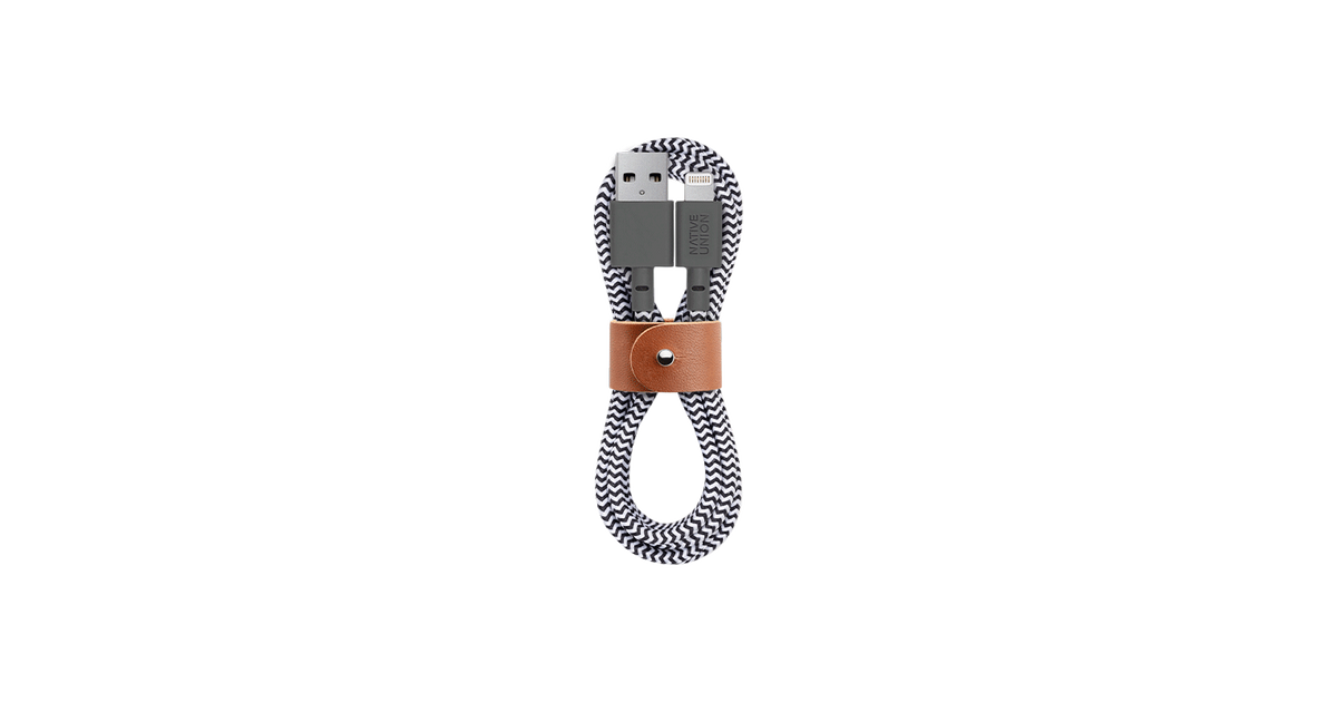 Native Union BELT-KV-CL-ZEB-3, 1,2 m, Lightning, USB A, Uros, Uros, Musta, Harmaa, Valkoinen