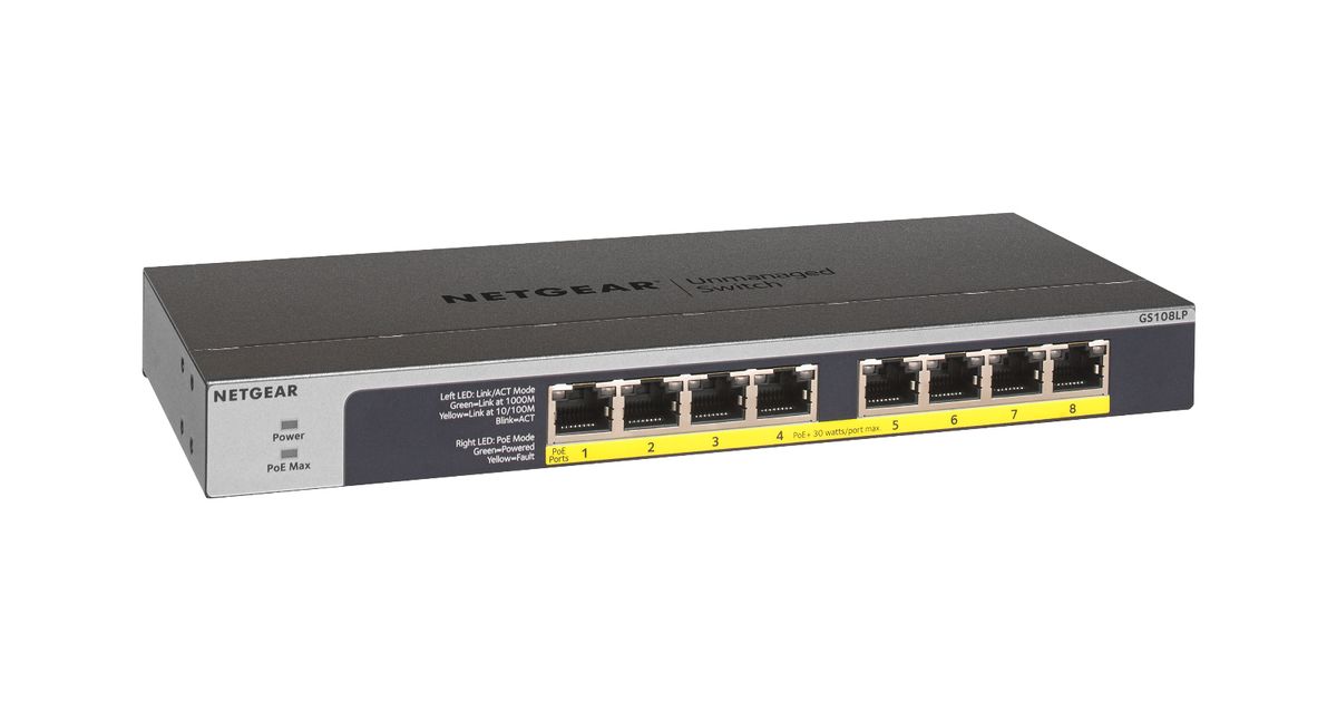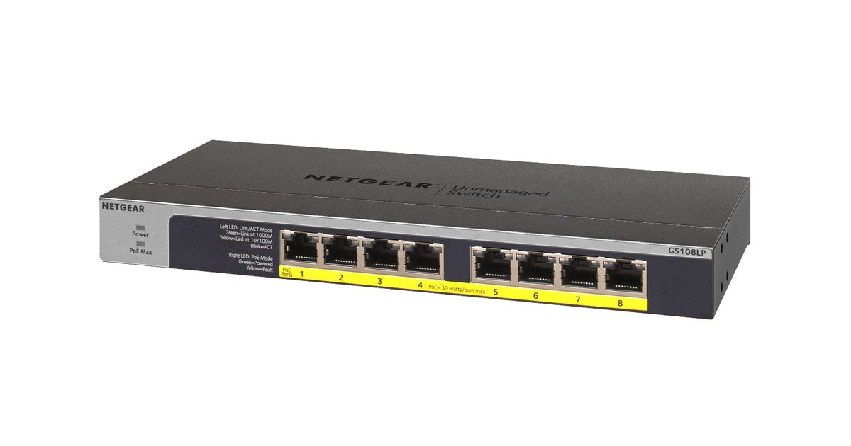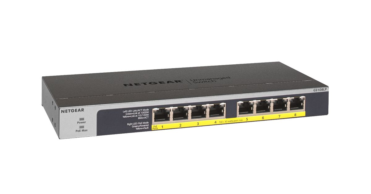 Netgear GS108LP Hallitsematon Gigabit Ethernet (10/100/1000) Power over Ethernet -tuki 1U Musta, Harmaa