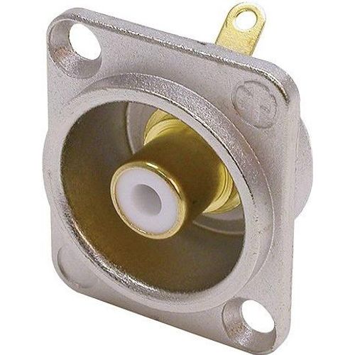 Neutrik NF2D-9, RCA female, Kulta, Metallinen, Valkoinen, Kulta, IP40, 50 V, UL 94 HB, IEC 601-14, IEC 68-2-20