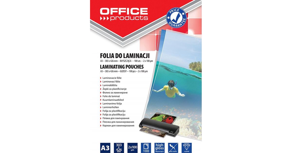 Office Products Office Lamination Foil Products, A3, 2x100mikr., Glossy, 100pcs, transparent