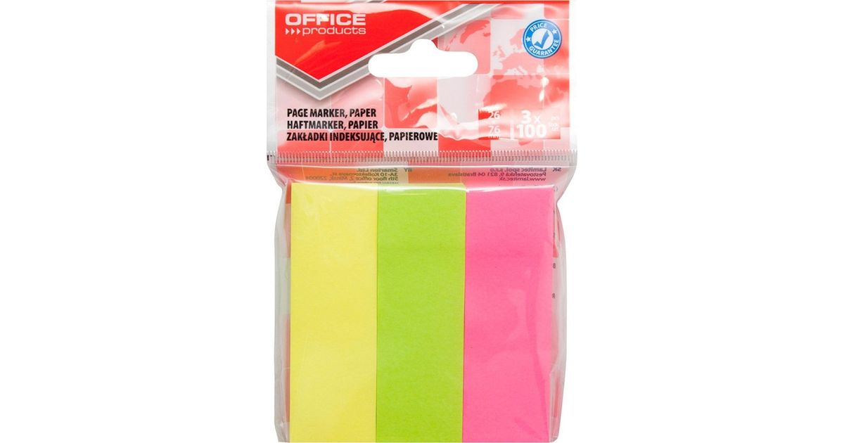 Office Products Zakładki indeksujące OFFICE PRODUCTS, papier, 26x76mm, 3x100 kart., zawieszka, mix kolorów