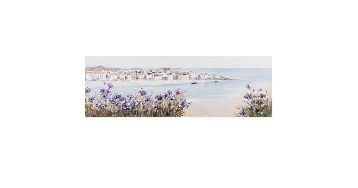 Öljymaalaus 50x150cm, ranta / violettiset kukat