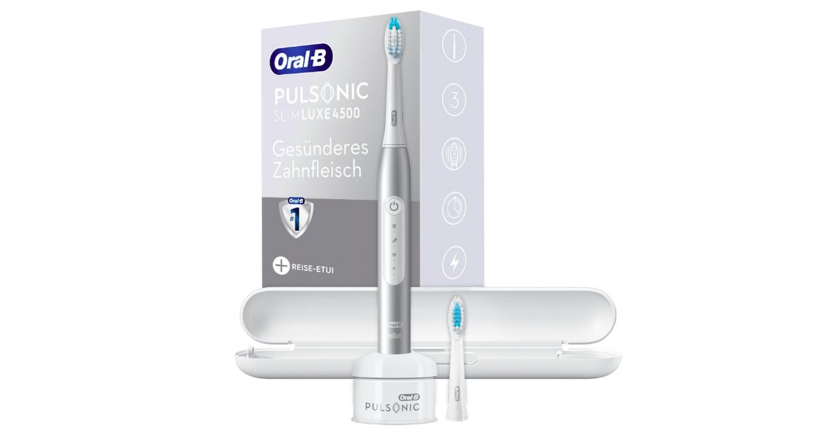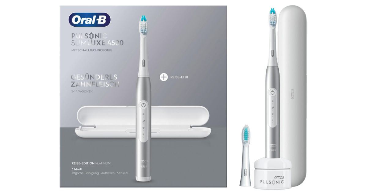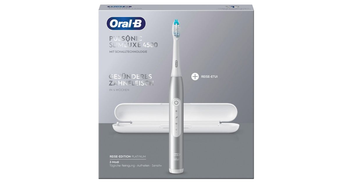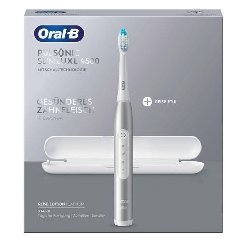 Oral-B Pulsonic Slim Luxe 4500, Aikuinen, Sonic-hammasharja, Päivittäinen käyttö, Herkkä, Valkaisu, 62000 liikettä minuutissa, Platina, 2 min
