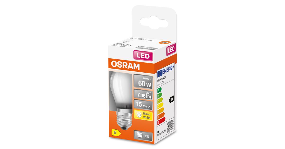 Osram STAR, 5,5 W, 60 W, E27, 806 lm, 15000 h, Lämmin valkoinen