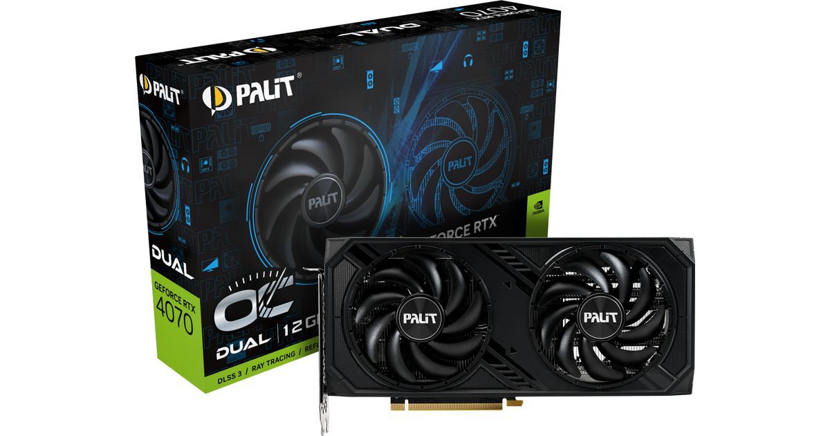 Palit NED4070S19K9-1047D, GeForce RTX 4070, 12 GB, GDDR6X, 192 bittiä, PCI Express 4.0, 2 tuuletin(ta)