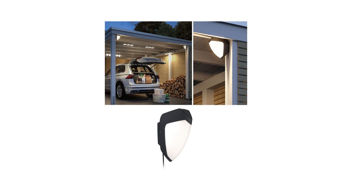 Paulmann 94518, Seinä-/kattovalaistus ulkotiloihin, Antrasiitti, Valkoinen, Muovi, Ruostumaton teräs, IP44, Autotalli, III