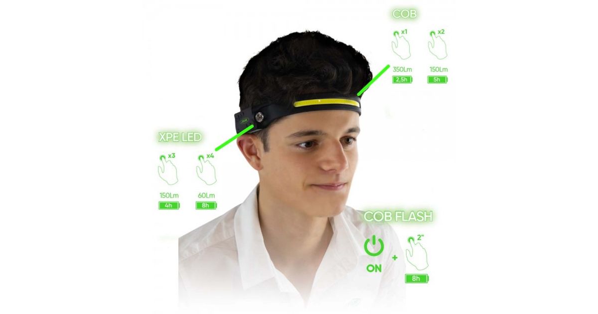 Ainulaadne pealamp Eesti turul - pehme ja painduv riba-LED pealamp (COB). Kaal vaid 70 g. Kuna õhuke ja elastne (silica gel). siis kasutamsel väga mugav. kuna laubal puudub suur-raske "kolakas" valgustuselement. Samuti on valgusti valgustusala palju laiem kui reflektoriga versioonidel. Liikumisanduriga. Küljel LED lisavalgustiga (XPE). Valgustusreziimid 100%. 350 lm. 50% 150 lm. vilkuv reziim. Küljel valgusti 150 lm ja 60 lm valgustus. Lamp on laetav USB-laadijatega. Niiskus-löögikindlus IPX4.