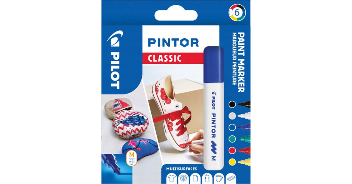 Pilot Pilot Pintor Classic, 6 tk, must, sinine, roheline, punane, valge, kollane, kuuliots, erinevaid värve, ümmargune, 4,5 mm