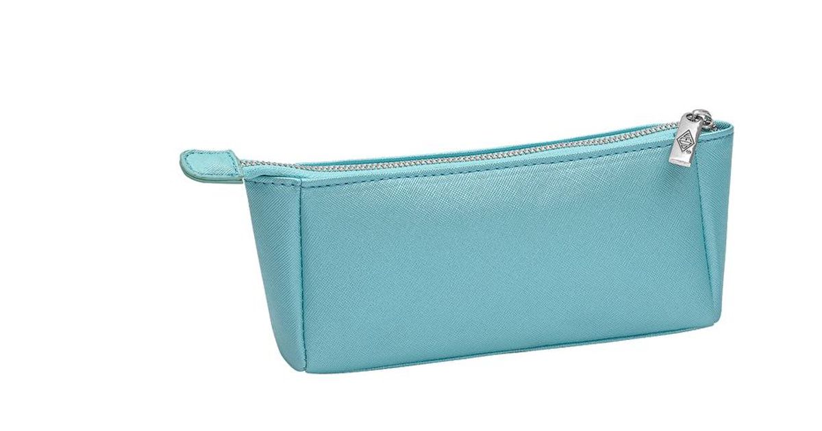 Kolm sektsiooni, millest üks on lukuga, 4 aasa pliiatsite jaoks. Kergesti hooldatav välismaterjal kvaliteetsest kunstnahast trendikas metallik türkiissinises toonis. Mõõdud: ca 25,5 x 9,2 x 4,5 cm.