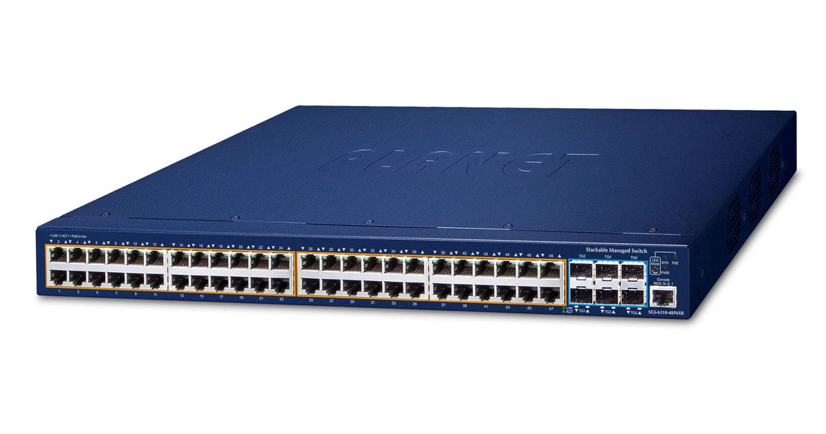 PLANET SGS-6310-48P6XR, Hallittu, L3, Gigabit Ethernet (10/100/1000), Power over Ethernet -tuki, Telineasennus, 1U