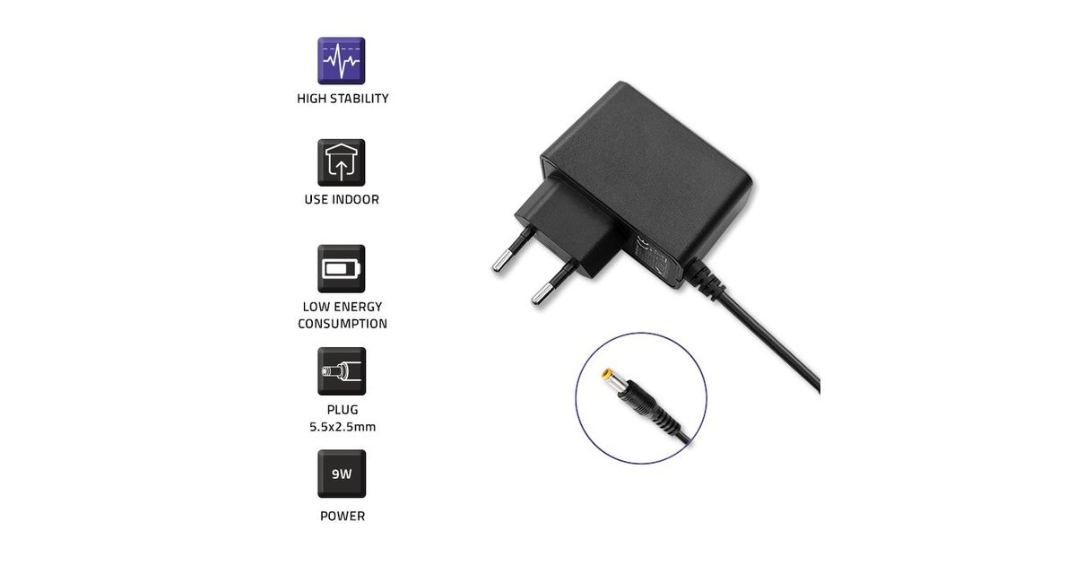 Plug in power supply 9W 9V, 1A, 5.5x2.5