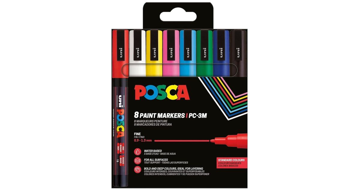 POSCA PC-3M 8STK alus farve - Kirjoitusvälineet - Paperitavarat - Toimistokalusteet - MT Shop