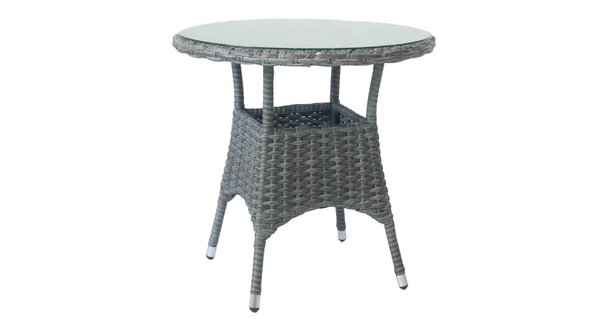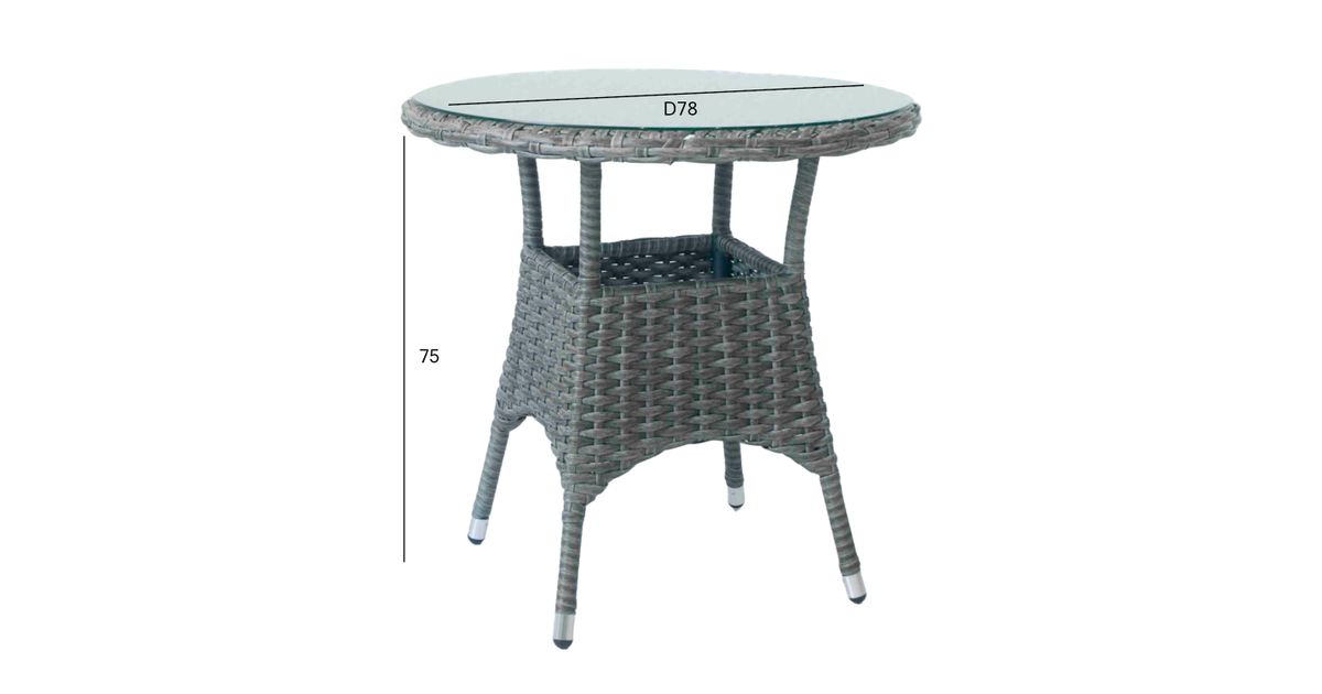 Pöytä WICKER D78xH75cm, pöytälevy: lasi, alumiinirunko muovipunoksella, väri: tummanruskea.