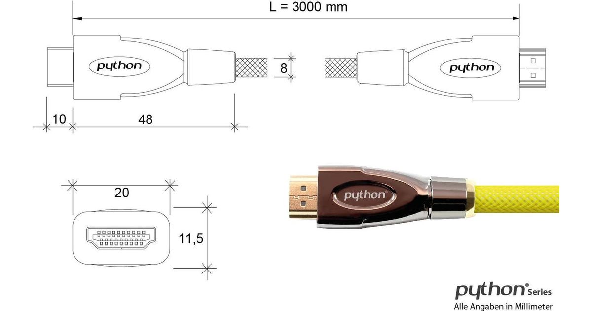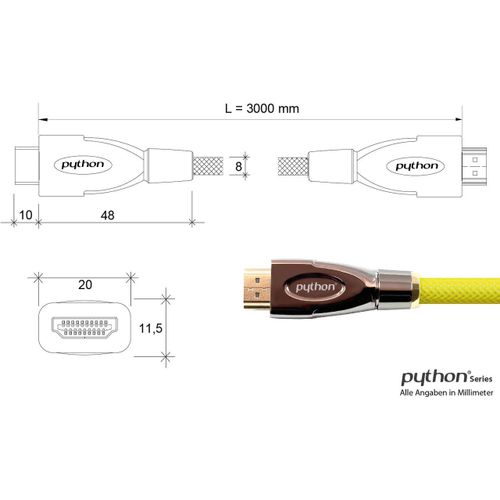 Python GC-M0029, 3 m, HDMI-tyyppi A (vakio), HDMI-tyyppi A (vakio), 3D, Keltainen