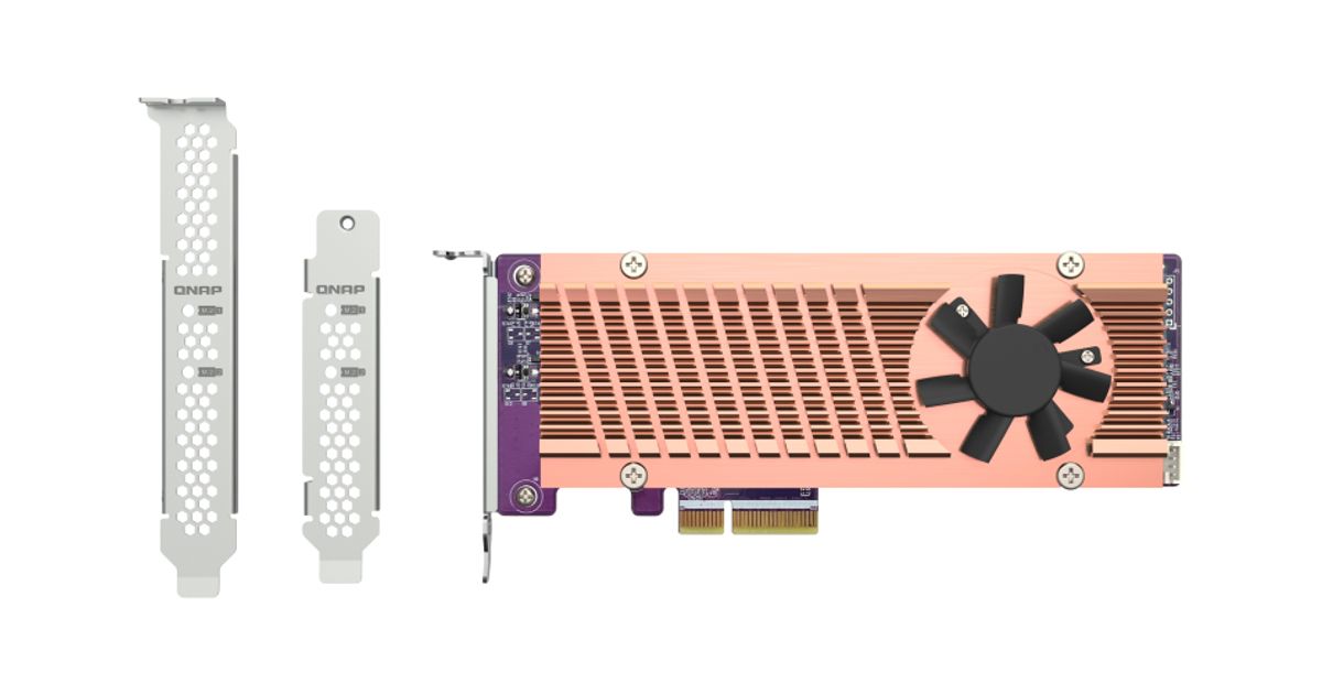 QNAP QM2-2P-344A, PCIe, M.2, PCIe 3.0, Ruskea, Harmaa, NAS / Storage server, Aktiivinen