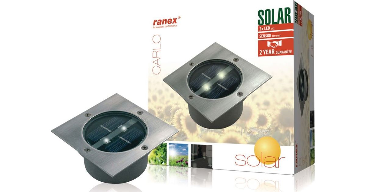 2 x 0,06-wattinen LED-valaisin asennetaan langattomasti, ja toimitukseen sisältyvät akkuparistot. Paristot ladataan päivän aikana, ja illan tullen valo syttyy. Jos paristot on ladattu täyteen, LED-aurinkokennoilla varustetun maahan asennettavan kohdevalaisimen käyttöaika on noin viisi tuntia. Tämä nelikulmainen LED-aurinkokennolla varustettu maahan asennettava kohdevalaisin toimii 2 x AAA-paristolla. • Soveltuu kaikentyyppisiin ulkotiloihin