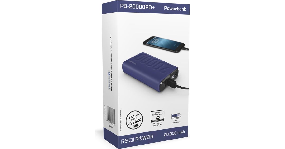 RealPower 333647 akku- ja paristolaturi 20000 mAh Laivasto