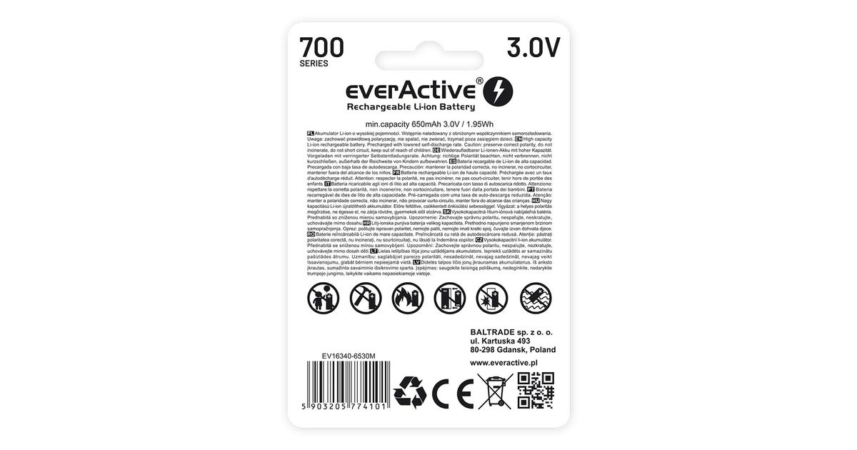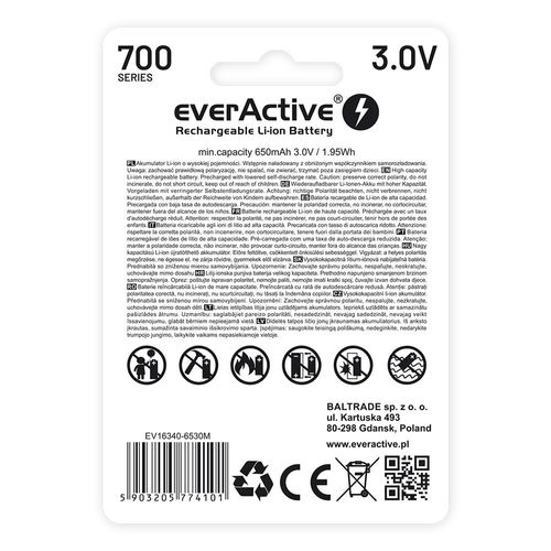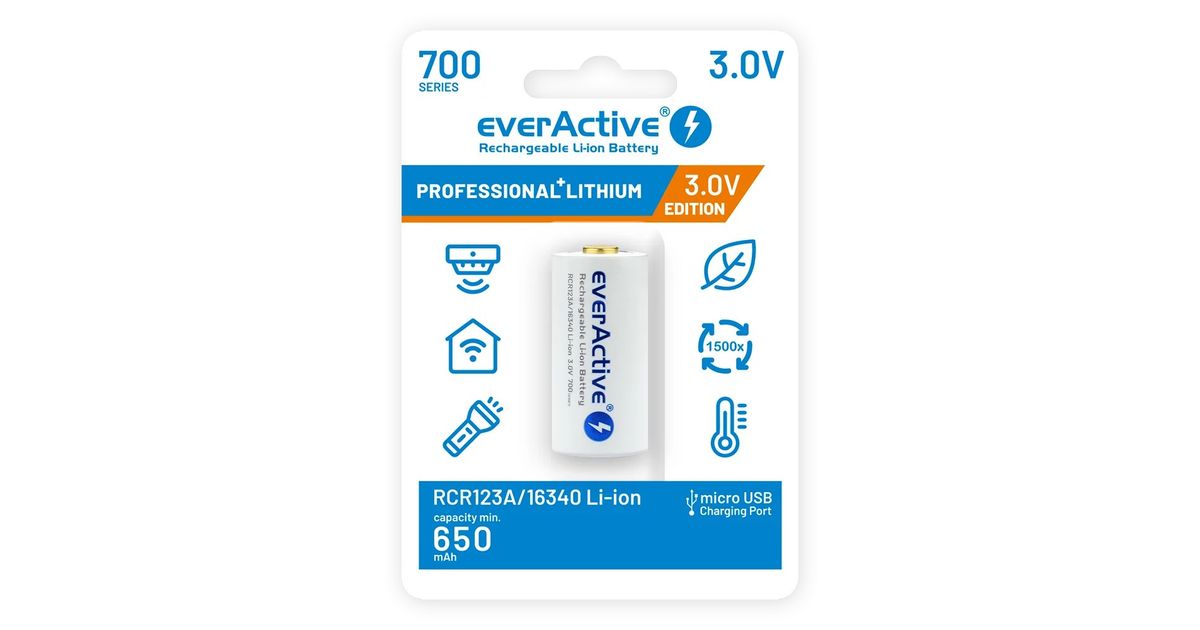 Rechargeble battery 16340 3V Li-ion 700 mAh micro USB