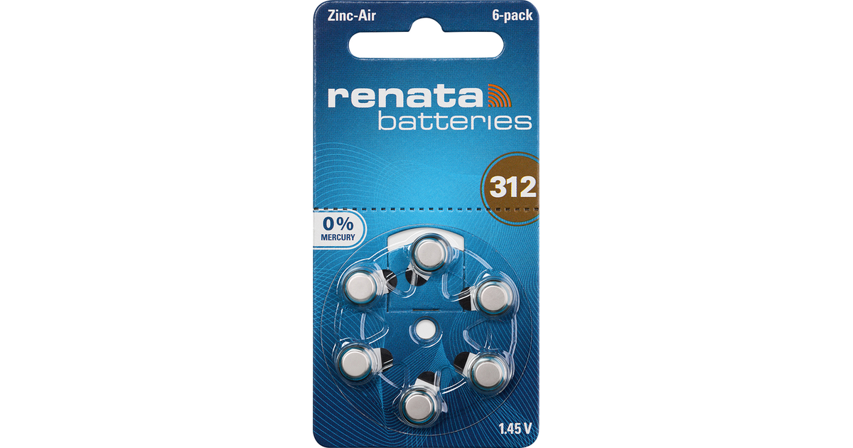 Renata Hearing Aid Pr41 Button Cell Za 312 Zinc Air 165 Mah 1.4 V 6 Pc(S)