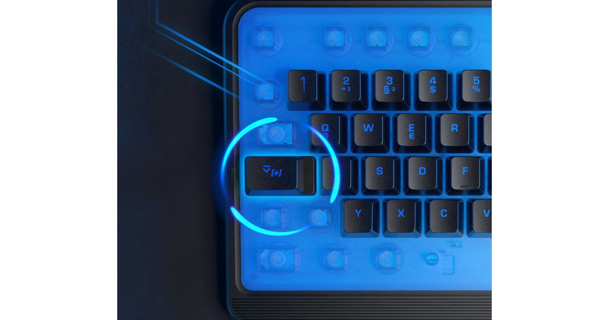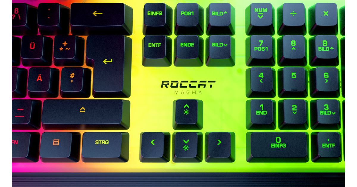 ROCCAT Magma, Täysikokoinen (100 %), USB, Kalvokytkin, QWERTZ, RGB LED, Musta