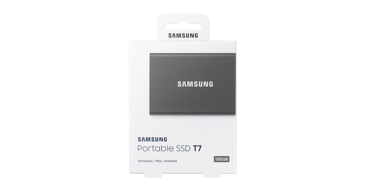 Samsung Portable SSD T7, 500 GB, USB Type-C, 3.2 Gen 2 (3.1 Gen 2), 1000 MB/s, Salasanasuojaus, Harmaa