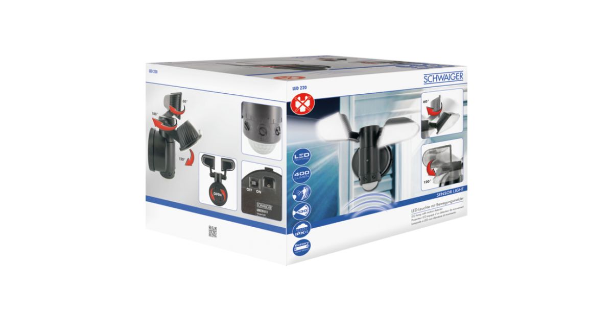 Schwaiger LED220 011, Seinävalaistus ulkotiloihin, Musta, Muovi, IP44, Liiketunnistin, 400 lm