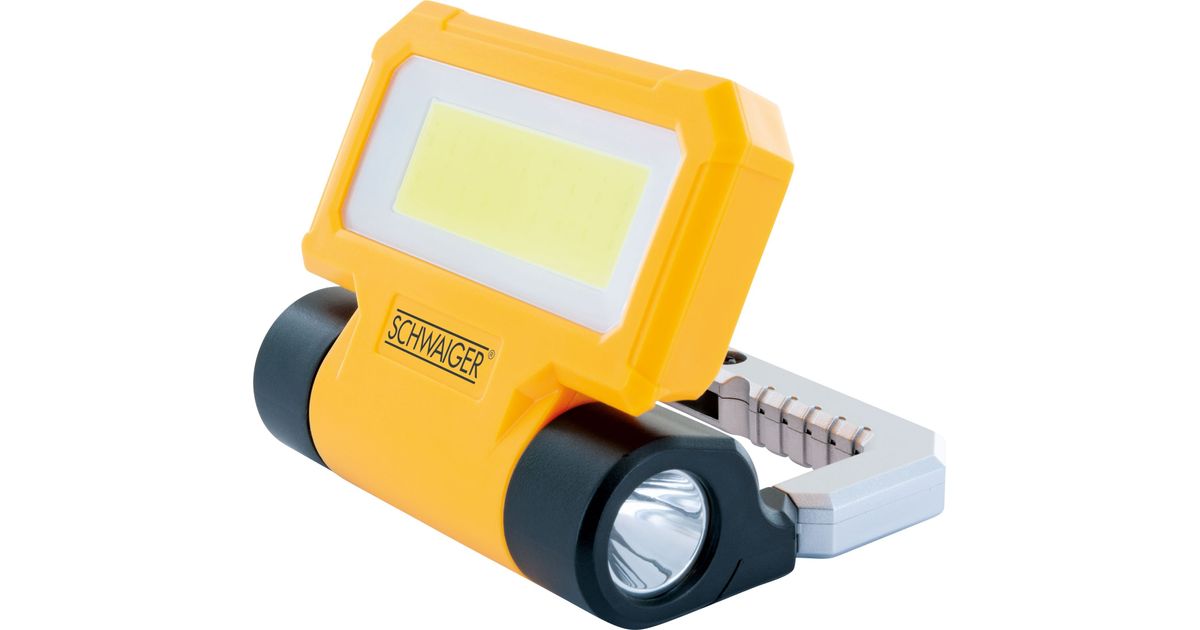 Schwaiger WL213, 6 W, LED, 2 lamppu(a), 2000 mAh, Musta, Hopea, Keltainen, Kädessä kannettava työvalo