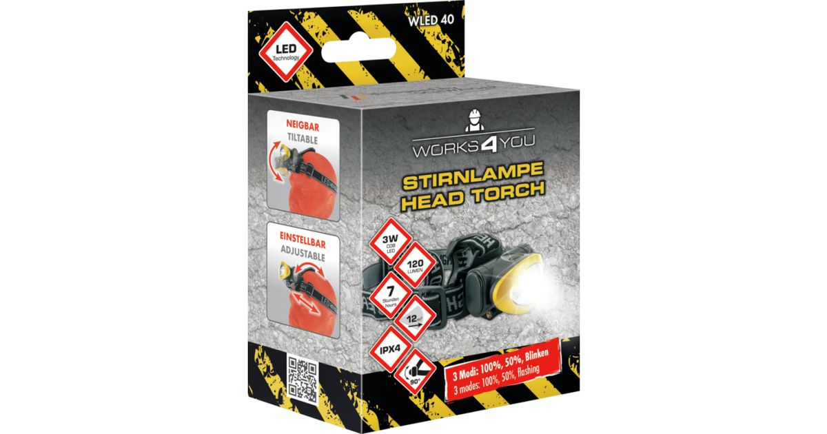 Schwaiger WLED 40, Taskulamppu otsanauhalla, Musta, Keltainen, Painikkeet, IPX4, COB LED, 1 lamppua