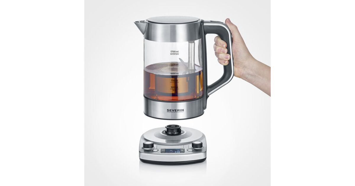Severin WK 3422, 1,7 L, 3000 W, Ruostumaton teräs, Lasi, Ruostumaton teräs, Säädettävä termostaatti, Veden tason ilmaisin