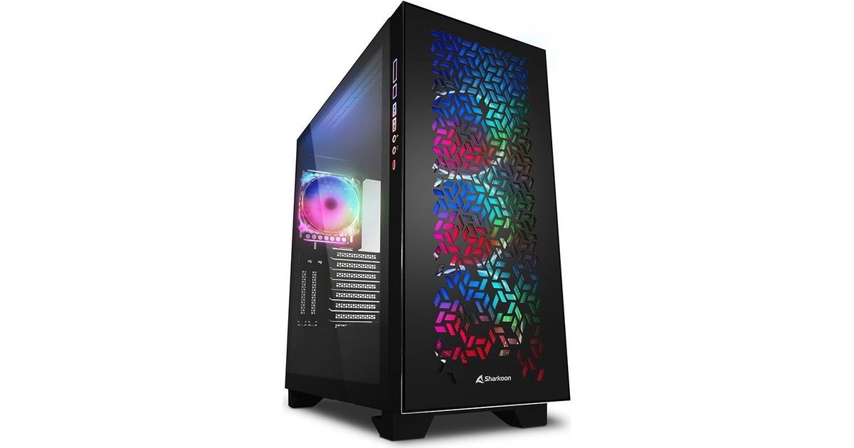 Sharkoon ELITE SHARK CA300H, Tower, PC, Musta, ATX, EATX, mikro ATX, Mini-ITX, Pelaaminen, Punainen/Vihreä/Sininen