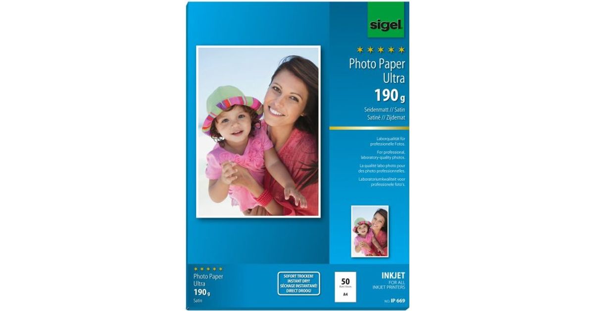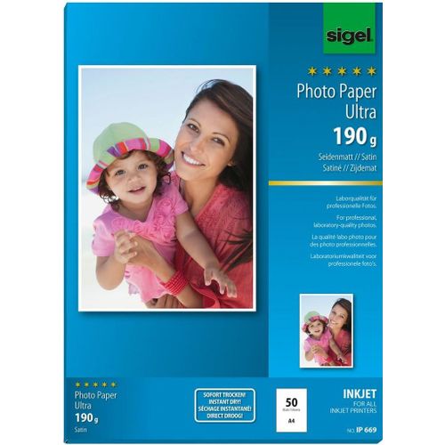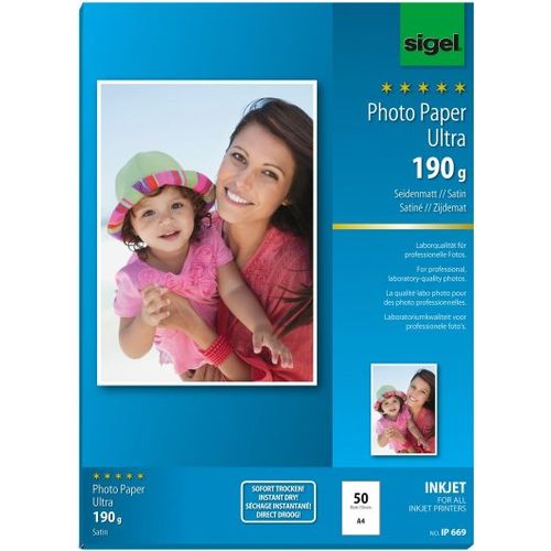 Sigel InkJet Ultra, Satiini, 190 g/m², A4, 50 arkkia