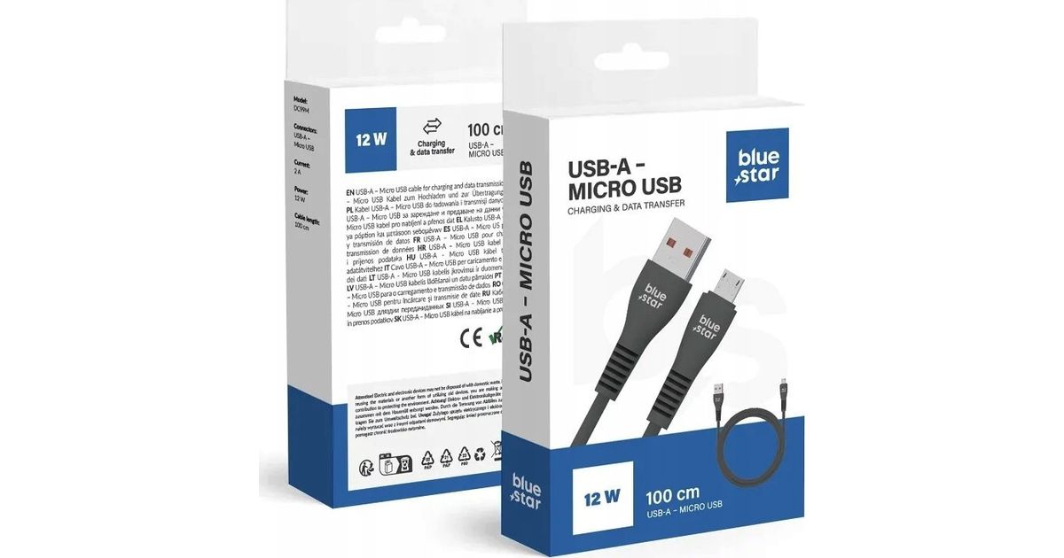 Sinise tähe kaabel USB A do Micro USB 2A 12W DC99M 1 m must