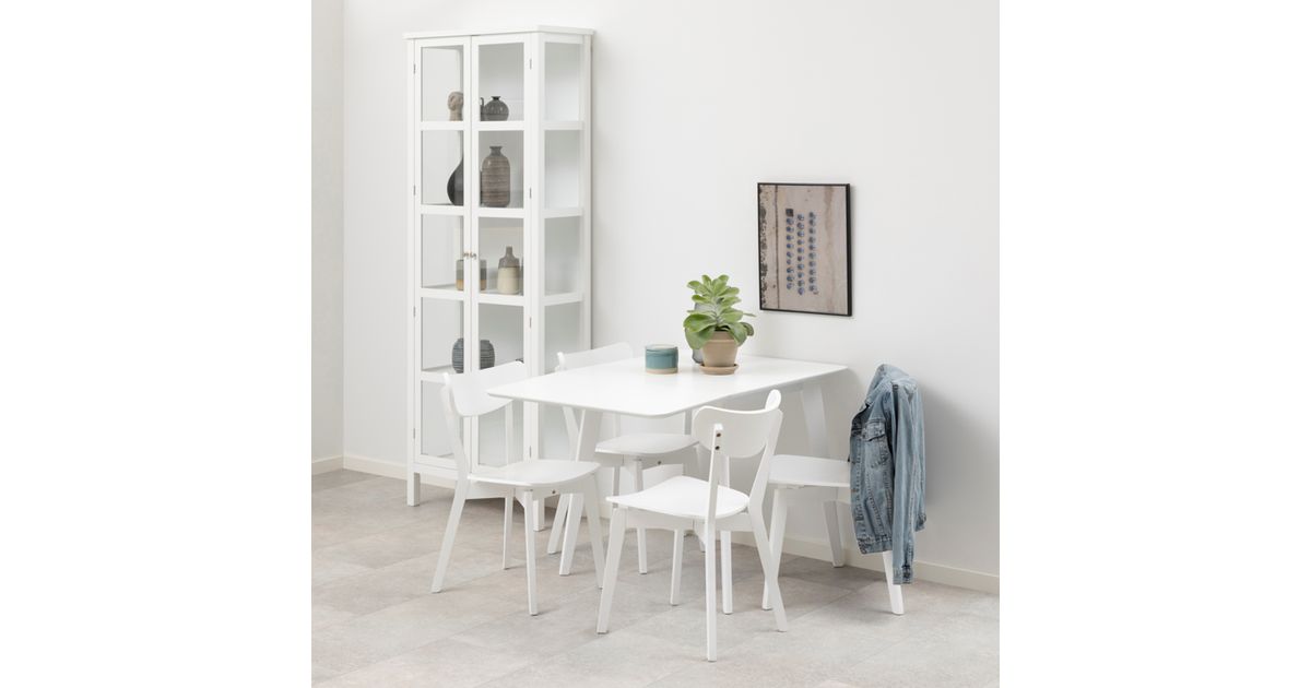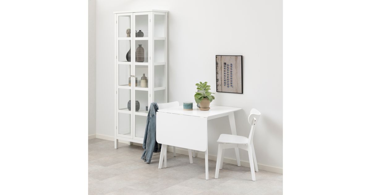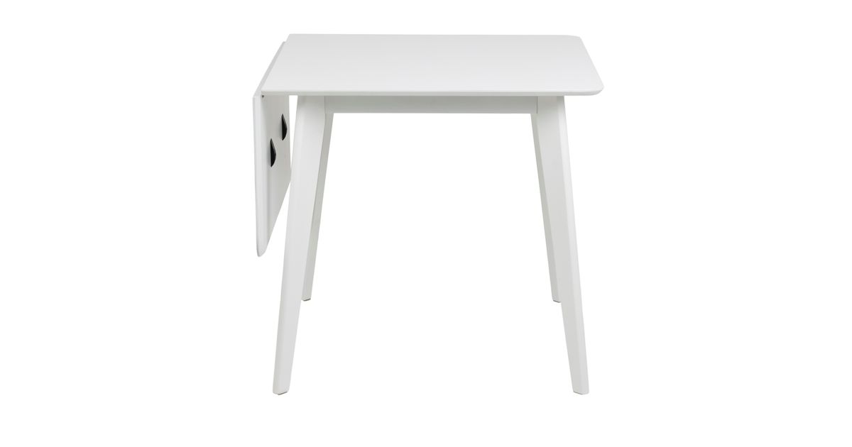Söögilaud ROXBY, 80/120x80xH76cm, valge, pikendatav küljelaud on mõõtudega 40x80cm. Lauaplaat: valgeks värvitud MDF, jalad: kummipuu, valgeks värvitud.