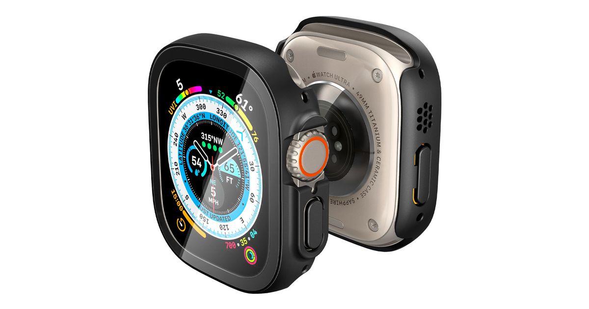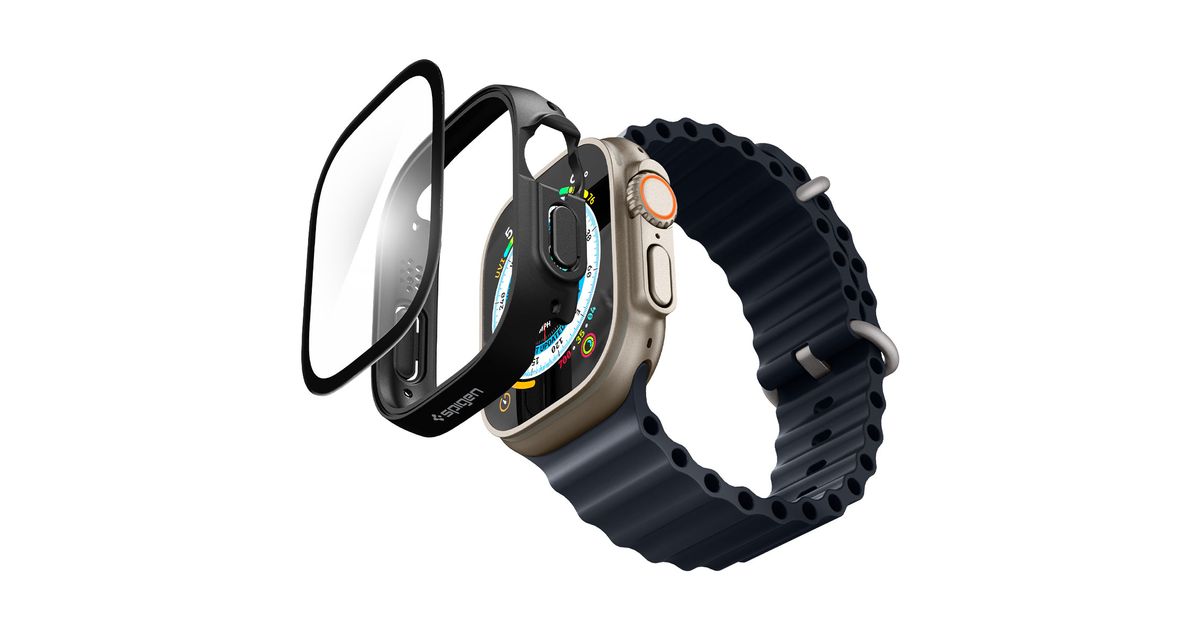 Spigen Thin Fit 360, Kotelo, Älykello, Musta, Apple, Apple Watch Ultra, Polykarbonaatti (PC), Karkaistu lasi