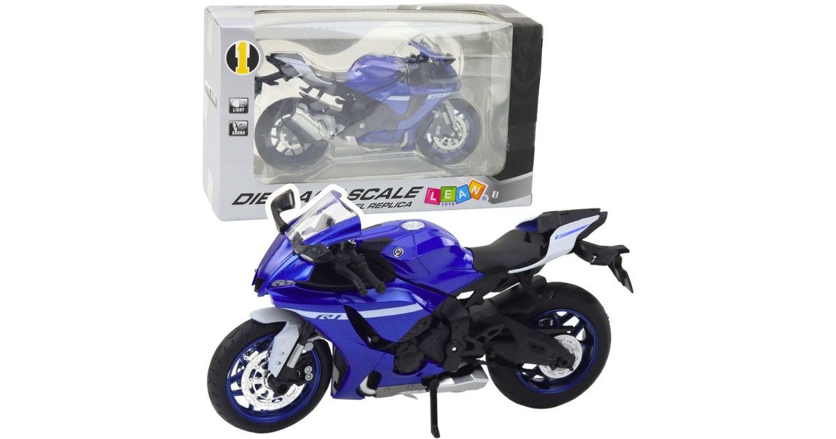 Sports Motorcycle Metal Lights Sounds Navy Blue R1 1:12